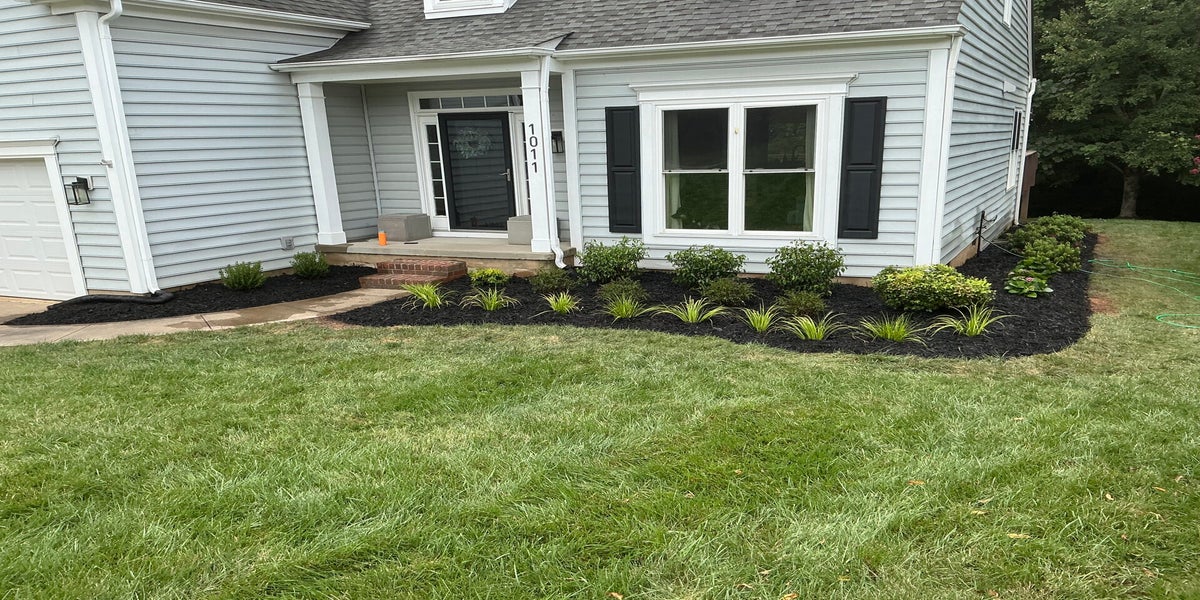 At the Jones residence, MOWtivated Lawn Care removed all existing plants and shrubs to make way for a refreshed, vibrant landscape design. We installed new plantings, reshaped and edged the beds for a clean, polished look, and added two French drains to improve drainage and protect the property from excess water.